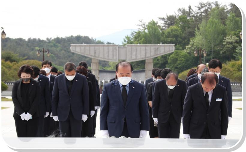 [°ø°£´º½º = ±è¼ö±Ù±âÀÚ] ÀåÈÖ±¹ ±¤Áֽñ³À°°¨°ú ½Ã±³À°Ã» °£ºÎ 40¿© ¸íÀÌ Á¦42ÁÖ³â 5¡¤18¹ÎÁÖȿ ±â³äÀÏÀ» ¾ÕµÐ 11ÀÏ ¿ÀÀü ±¹¸³ 5¡¤18¹ÎÁÖ¹¦Áö¿Í ¸Á¿ùµ¿ ¹ÎÁ·¹ÎÁÖ¿»ç¹¦¿ªÀ» Âü¹èÇß´Ù.