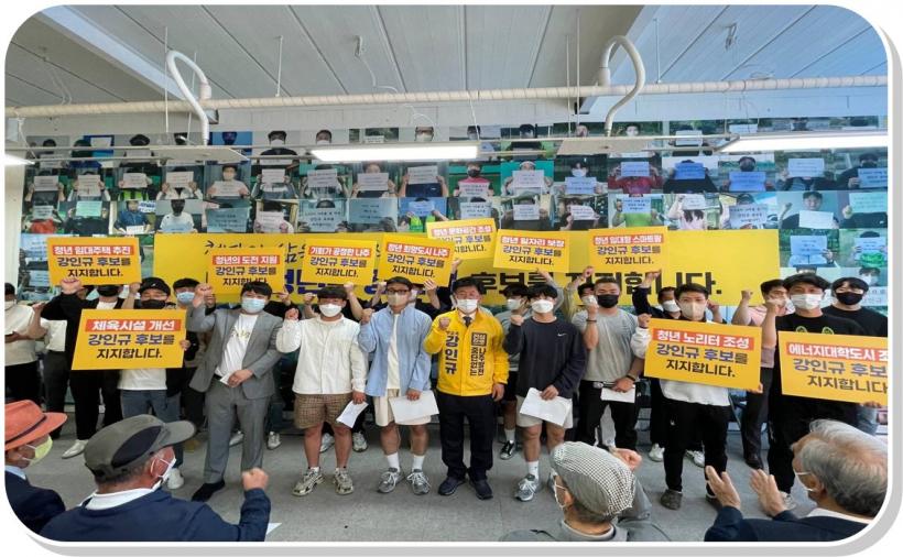 ¿À´Ã °ÀÎ±Ô Èĺ¸ÀÇ ¼±°Å»ç¹«¼Ò °³¼Ò½ÄÀº °æ°íÀå ÆÛÆ÷¸Õ½º, û³â ÆÛÆ÷¸Õ½º¿Í °°Àº ÀÌ»öÀûÀÎ Çà»çµé·Î ä¿öÁ³´Ù. Âü¼®ÀÚµéÀÌ °ÀÎ±Ô Èĺ¸ÀÇ »ó¡»öÀÎ ³ë¶õ»ö ÇÇÄÏÀ» µé°í ¹ÎÁÖ´ç¿¡°Ô °æ°íÀåÀ» ³¯¸®´Â ÆÛÆ÷¸Õ½º°¡ ÀÌ·ç¾îÁ³À¸¸ç, ³ªÁÖ Áö¿ª û³âµéÀÌ ÀڽŵéÀÇ ¸Þ½ÃÁö¸¦ ´ãÀº Çö¼ö¸·À» µé°í °ÀÎ±Ô È常¦ ÁöÁöÇÏ´Â ÆÛÆ÷¸Õ½ºµµ ÀÌ·ç¾îÁ³´Ù.