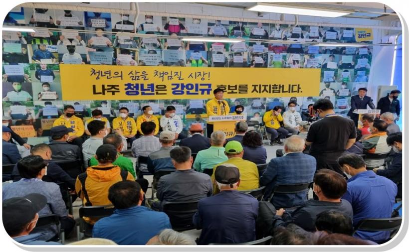 [°ø°£´º½º = ±è¼ö±Ù±âÀÚ] Áö³ 2ÀÏ ¹«¼Ò¼Ó Ã⸶¸¦ ¼±¾ðÇÑ °ÀÎ±Ô ³ªÁÖ½ÃÀå Èĺ¸ÀÇ ¼±°Å»ç¹«¼Ò °³¼Ò½ÄÀÌ Áö³ 14ÀÏ Áß¾Óµ¿ ¹Ì¸£»ùºôµù 4Ãþ¿¡¼ 2,000¿© ¸íÀÇ ÁöÁöÀÚµéÀÌ Âü¼®ÇÑ °¡¿îµ¥ ¼ºÈ²¸®¿¡ Ä¡·¯Á³´Ù.