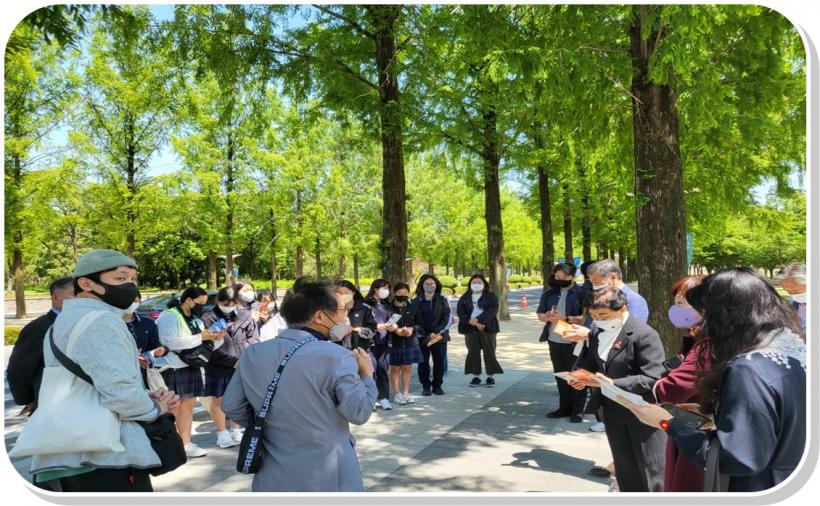 Á¦ÁÖ ÀÏÇàÀº ù³¯ 5¡¤18¹ÎÁÖȿ ÃÖÃÊ ¹ß¿øÁö·Î »çÀûÁö 1È£ Ç¥Áö¼®ÀÌ À§Ä¡ÇÑ Àü³²´ë¸¦ ½ÃÀÛÀ¸·Î µéºÒ ¾ßÇÐÅÍ, ½Ã¹Î¾ÆÆÄÆ® µîÀ» µ¹¾Æº¸°í »êÁ¤ÁßÇб³ Çлýµé°ú ÇÔ²² 5¡¤18À» ÁÖÁ¦·Î ÇÑ ´Ù¾çÇÑ ±³·ù Ȱµ¿¿¡ Âü¿©ÇÑ´Ù.