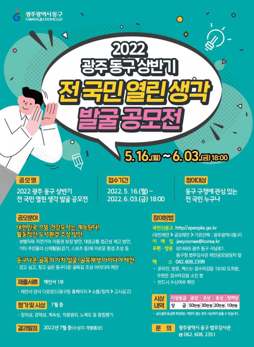 [°ø°£´º½º = ±è´ë¿µ±âÀÚ] ±¤ÁÖ µ¿±¸´Â 16ÀϺÎÅÍ 6¿ù 3ÀϱîÁö ¡®2022 »ó¹Ý±â Àü ±¹¹Î ¿¸° »ý°¢ ¹ß±¼ °ø¸ðÀü¡¯À» ½Ç½ÃÇÑ´Ù°í ¹àÇû´Ù.