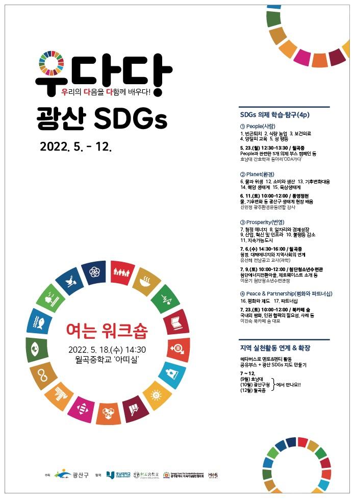 ¡®¿ì´Ù´Ù(¿ì¸®ÀÇ ´ÙÀ½À» ´ÙÇÔ²² ¹è¿ì´Ù)! ±¤»êSDGs¡¯ »ç¾÷ÀÌ´Ù. ÀÌ »ç¾÷Àº UN(À¯¿£)°ú ±¹Á¦»çȸ°¡ ÇØ°áÇϰíÀÚ ÀÌÇàÇÏ´Â Áö¼Ó°¡´É¹ßÀü¸ñÇ¥ 17°³ ÀÇÁ¦¸¦ û¼Ò³âµé°ú ¹è¿ì°í ½ÇõÇÏ´Â °ÍÀÌ ÇÙ½ÉÀÌ´Ù.
