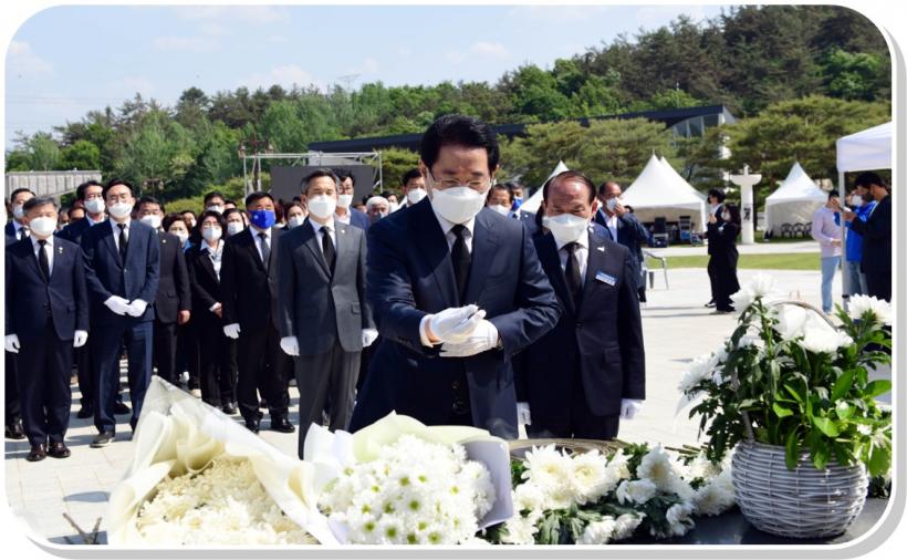 [°ø°£´º½º = ±è¼ö±Ù±âÀÚ] ±è¿µ·Ï ´õºÒ¾î¹ÎÁÖ´ç Àü¶ó³²µµÁö»ç È帴 17ÀÏ Á¦42ÁÖ³â 5¡¤18¹ÎÁÖȿ ±â³äÀÏÀ» ¾ÕµÎ°í ¡°ÀÌ ¶¥ÀÇ ÀÚÀ¯¿Í Á¤ÀÇ, ±×¸®°í ¹ÎÁÖÁÖÀǸ¦ À§ÇØ Èñ»ýÇϽŠ5¡¤18 ¹ÎÁÖ ¿µ·ÉÀ» Ã߸ðÇϰí, ±× ¶§ÀÇ ¾ÆÇ »óó·Î Áö±Ý±îÁö °íÅëÀ» °Þ°í °è½Ã´Â À¯°øÀÚ¿Í À¯°¡Á· ¿©·¯ºÐ²² ½É½ÉÇÑ À§·ÎÀÇ ¸»¾¸À» µå¸°´Ù¡±¸ç ¡°5¡¤18¹ÎÁÖȿÀÇ ¿ÏÀüÇÑ Áø»ó±Ô¸í°ú ÇÔ²² 5¡¤18Á¤½ÅÀÌ ÇϷ绡¸® Çå¹ý¿¡ Àü¹® ¼ö·ÏµÉ ¼ö ÀÖ´Â °è±â°¡ ¸¶·ÃµÇ±æ ±â´ëÇÑ´Ù¡±°í ¹àÇû´Ù.