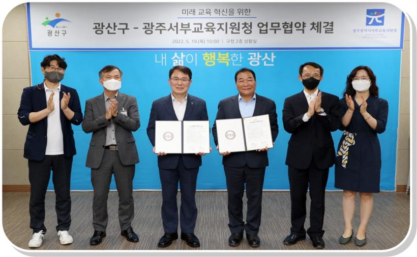 [°ø°£´º½º = ±è´ë¿µ±âÀÚ] ±¤ÁÖ ±¤»ê±¸¿Í ±¤ÁÖ¼ºÎ±³À°Áö¿øÃ»ÀÌ 19ÀÏ ±¤»ê±¸Ã» 2Ãþ »óȲ½Ç¿¡¼ ¹Ì·¡±³À° Çõ½Å°ú Áö¼ÓÀûÀÎ Áö¿ª±³À° Çù·Âü°è ±¸ÃàÀ» À§ÇÑ ¾÷¹«Çù¾àÀ» ü°áÇß´Ù.