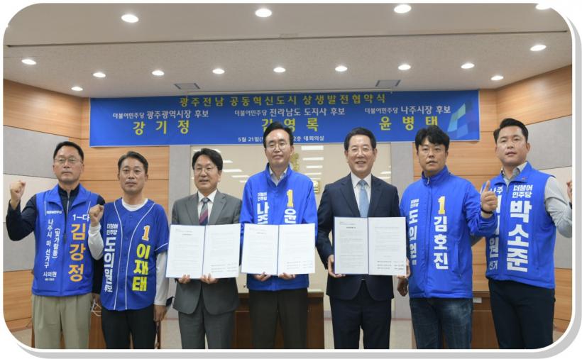 [°ø°£´º½º = ±è¼ö±Ù±âÀÚ] ¸Þ°¡½ÃƼ ±¸Ãà°ú ±¤¿ªÇù·ÂÀÌ Áö¹æÇàÁ¤ÀÇ ÈµÎ·Î ¶°¿À¸¥ °¡¿îµ¥, ´õºÒ¾î¹ÎÁÖ´çÀÇ °±âÁ¤ ±¤ÁÖ±¤¿ª½ÃÀå Èĺ¸, ±è¿µ·Ï Àü¶ó³²µµ µµÁö»ç Èĺ¸, À±º´Å ³ªÁÖ½ÃÀå È帰¡ ±¤ÁÖ¡¤Àü³² ±¤¿ªÇù·Â ¹× °øµ¿Çõ½Åµµ½Ã(ºû°¡¶÷) Áö¿øÀ» À§ÇÑ »ó»ýÁ¤Ã¥Çù¾àÀ» ü°áÇß´Ù.