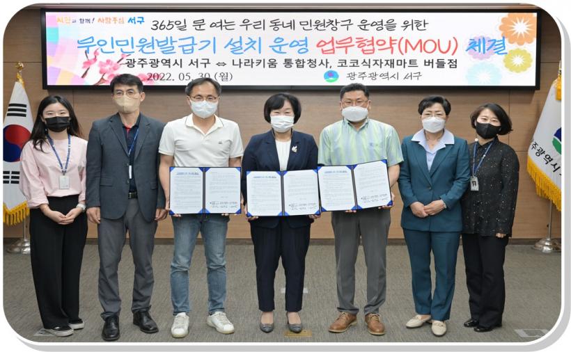 [°ø°£´º½º = ±è¼ö±Ù±âÀÚ] ±¤ÁÖ ¼±¸°¡ 5¿ù 30ÀÏ ³ª¶óŰ¿ò ±¤ÁÖÅëÇÕû»ç¿Í ÄÚÄÚ½ÄÀÚÀ縶Ʈ ¹öµéÁ¡°ú ÇÔ²² ¹«Àιοø¹ß±Þ â±¸ ¼³Ä¡¡¤¿î¿µ¿¡ µû¸¥ Æ÷°ýÀû »óÈ£Çù·ÂÀ» À§ÇØ ¾÷¹«Çù¾àÀ» ü°áÇß´Ù.