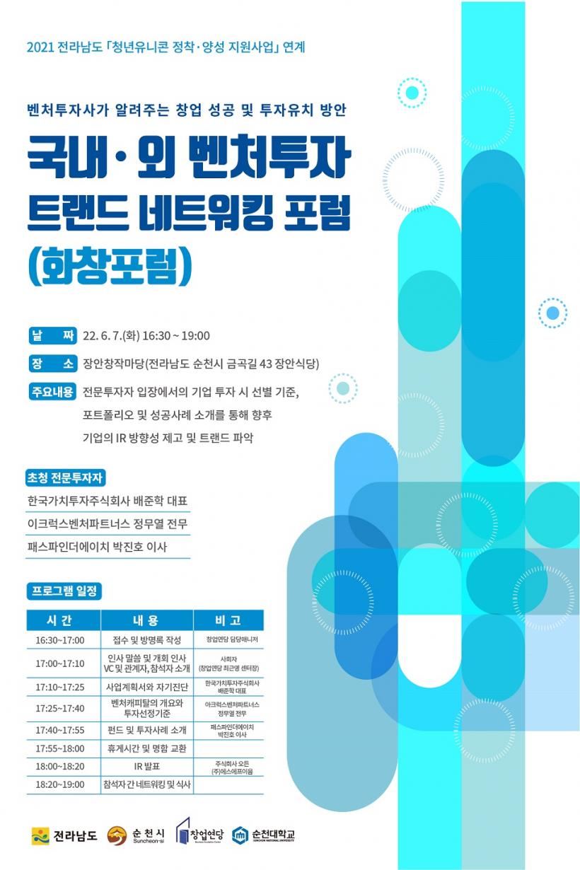 ¼øÃµ â¾÷¿¬´ç ÃÖ±Ù¿µ ¼¾ÅÍÀåÀº ¡°Àü¹®ÅõÀÚ±â°ü°ú ±â¾÷ °£ ³×Æ®¿öÅ· Çà»ç¸¦ ÁÖ°üÇÏ°Ô µÇ¾î ¸Å¿ì ±â»Ú´Ù¡±¶ó¸ç, ¡°À̹ø Æ÷·³ÀÌ ÅõÀÚÀÚ¿Í Ã¢¾÷±â¾÷ÀÌ Áö¼ÓÀûÀ¸·Î ¸¸³ª´Â °è±â°¡ µÇ¾î, ±×°£ Á¶¸í¹ÞÁö ¸øÇÑ ¿ø¼®À» ã´Â ÀÚ¸®°¡ µÉ °ÍÀÌ´Ù.¡±¶ó°í ¸»Çß´Ù.