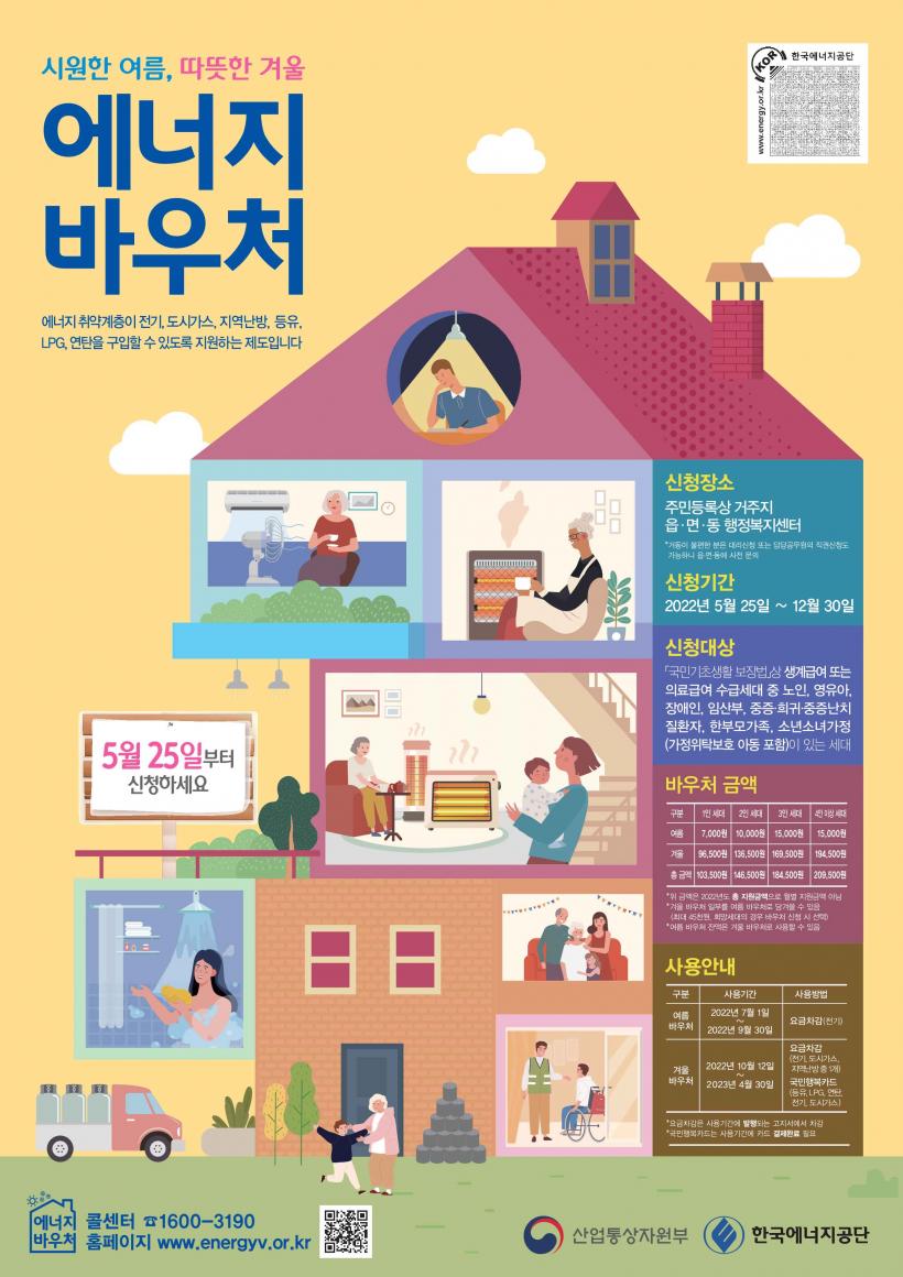 2022³â ¿¡³ÊÁö¹Ù¿ìó Áö¿ø±Ý¾×Àº ¼¼´ë¿ø ¼ö¿¡ µû¶ó ÃÖ¼Ò 103,500¿ø(1ÀÎ)ºÎÅÍ 209,500¿ø(4ÀÎ ÀÌ»ó)±îÁö Áö¿øµÈ´Ù. ¿©¸§ ¹Ù¿ìó´Â 7¿ù 1ÀϺÎÅÍ 9¿ù 30ÀϱîÁö, °Ü¿ï ¹Ù¿ìó´Â 10¿ù 12ÀϺÎÅÍ ³»³â 4¿ù 30ÀϱîÁö »ç¿ëÇÒ ¼ö ÀÖ´Ù.