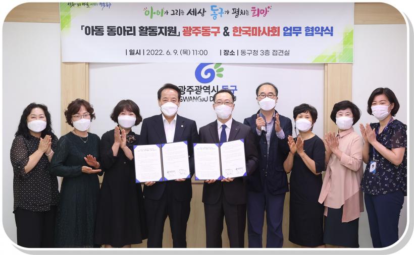 [°ø°£´º½º = ±è´ë¿µ±âÀÚ] ±¤ÁÖ µ¿±¸(±¸Ã»Àå ÀÓÅÃ)´Â Áö³ 9ÀÏ Çѱ¹¸¶»çȸ ±¤ÁÖÁö»ç¿Í ¾Æµ¿ µ¿¾Æ¸® Ȱµ¿ Áö¿øÀ» À§ÇÑ ¾÷¹« Çù¾àÀ» ü°áÇß´Ù°í ¹àÇû´Ù.