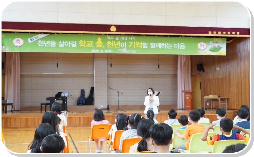 ±¤ÁÖµ¿ÃʵîÇб³ Ȳ´öÀÚ ±³ÀåÀº ¡°¡®Ãµ³âÀ» »ì¾Æ°¥ Çб³½£, õ³âÀÌ ±â¾ïÇÒ ÇÔ²²ÇÏ´Â ¸¶À½¡¯À» ÁÖÁ¦·Î Çб³½£ÀÌ ¹øÃ¢Çϱ⸦ ¹Ù¶ó´Â ¿ì¸® ¸ðµÎÀÇ ¹Ù¶÷À» ´ã¾Æ °³Àå½ÄÀ» °³ÃÖÇÑ´Ù¡±¸ç ¡°ÇлýµéÀÌ Çб³½£ °ø°£À» ÅëÇØ Á¤¼ ÇÔ¾ç ¹× ÀÚ¿¬ Ä£ÈÀûÀÎ ¹è¿òÀÇ °ø°£À¸·Î Ȱ¿ëÇϰí, Àα٠Áö¿ª ÁֹεéÀÌ ´©±¸³ª ÀÌ¿ëÇÒ ¼ö ÀÖ´Â ½°ÅÍÀÇ °ø°£ÀÌ µÇ±â¸¦ ±â´ëÇÑ´Ù¡±°í ¸»Çß´Ù.