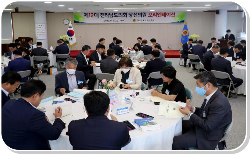 [°ø°£´º½º = ±è¼ö±Ù±âÀÚ] Àü¶ó³²µµÀÇȸ»ç¹«Ã³´Â 22ÀÏ Á¦8ȸ Àü±¹µ¿½ÃÁö¹æ¼±°Å¿¡¼ Áö¿ª À¯±ÇÀÚµé·ÎºÎÅÍ ¼±ÅÃÀ» ¹Þ¾Æ µµÀÇ¿øÀ¸·Î ÀÔ¼ºÇÑ Á¦12´ë ´ç¼±ÀÇ¿øµéÀ» ´ë»óÀ¸·Î ¿À¸®¿£Å×À̼ÇÀ» °³ÃÖÇß´Ù.