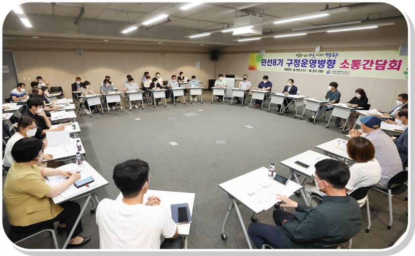 [°ø°£´º½º = ±è´ë¿µ±âÀÚ] ±¤ÁÖ µ¿±¸(±¸Ã»Àå ÀÓÅÃ)´Â ¹Î¼±8±â Ãâ¹üÀ» ¾ÕµÎ°í Àç¼±¿¡ ¼º°øÇÑ ÀÓÅà µ¿±¸Ã»Àå°ú ÇÔ²² ±¸Á¤ ¿î¿µ ¹æÇâ¿¡ ´ëÇÑ ÀÌÇØ¿Í ¹ßÀü Àü·«À» ¸¶·ÃÇϰíÀÚ ¡®°øÁ÷ÀÚ ¼ÒÅë °£´ãȸ¡¯¸¦ °³ÃÖÇÑ´Ù°í ¹àÇû´Ù.