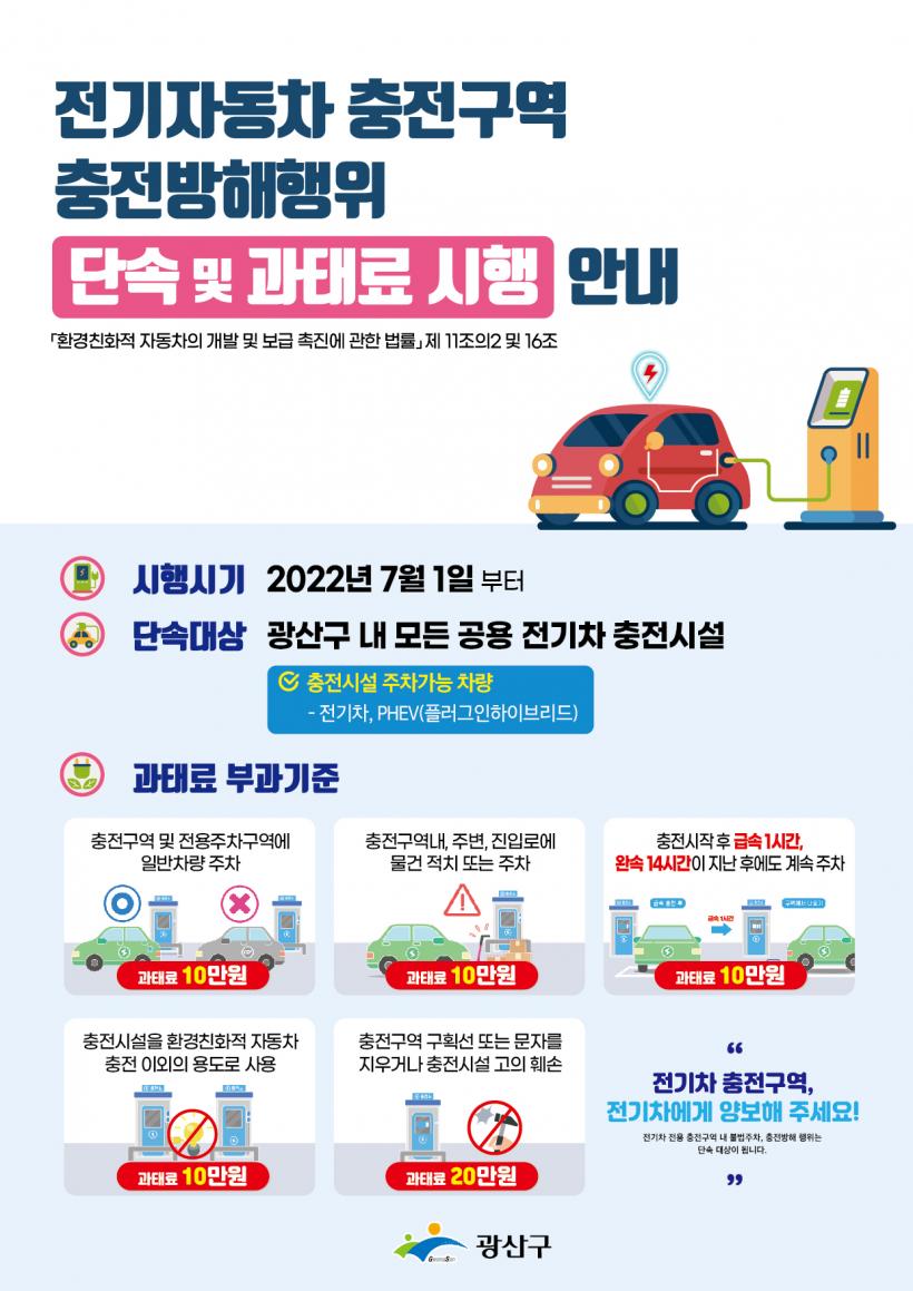 [°ø°£´º½º = ±è´ë¿µ±âÀÚ] ±¤ÁÖ ±¤»ê±¸´Â 7¿ù1ÀϺÎÅÍ ¸ðµç °ø¿ë ÃæÀü½Ã¼³ÀÇ Àü±âÂ÷ ÃæÀü ¹æÇØ ÇàÀ§ ´Ü¼Ó°ú ÀÌ¿¡ ´ëÇÑ °úÅÂ·á ºÎ°ú°¡ ½ÃÇàµÈ´Ù°í ¹àÇû´Ù.