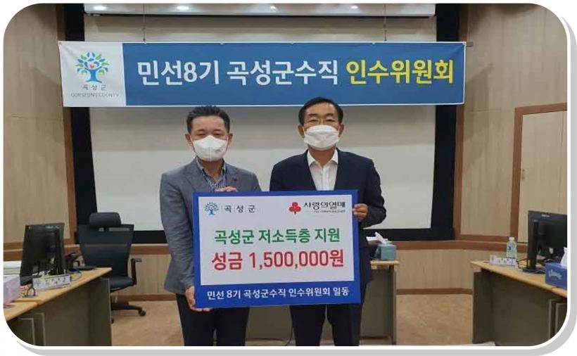 [°ø°£´º½º = ±è¼ö±Ù±âÀÚ] °î¼º±º ¹Î¼±8±â °î¼º±º¼öÁ÷ ÀμöÀ§¿øÈ¸´Â ¾î·Á¿î ÀÌ¿ô°ú ¼Ò¿Ü°èÃþÀ» À§ÇÏ¿© ½á´Þ¶ó¸ç Àü³² »çȸº¹Áö°øµ¿¸ð±Ýȸ¿¡ ÀμöÀ§¿øÈ¸ Ȱµ¿ ¼ö´ç 150¸¸¿øÀ» ±âºÎÇß´Ù.