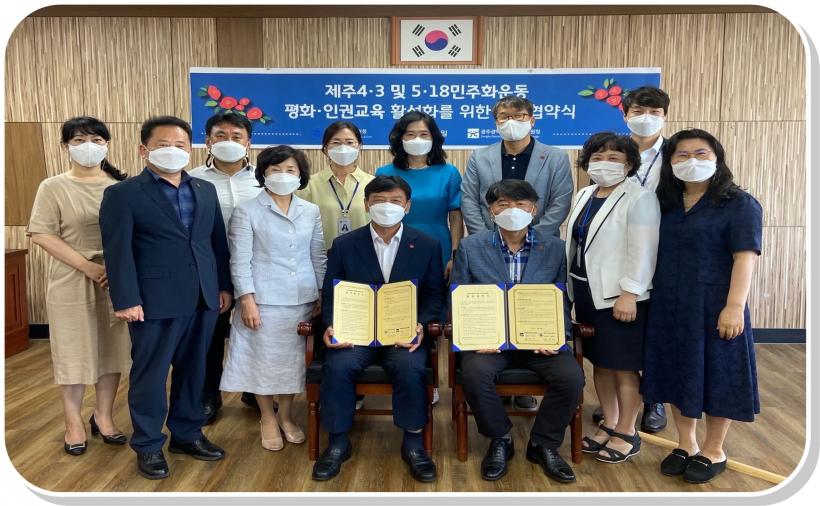 [°ø°£´º½º = ±è¼ö±Ù±âÀÚ] ±¤ÁÖµ¿ºÎ±³À°Áö¿øÃ»(±³À°Àå Á¤³«ÁÖ)°ú Á¦Áֽñ³À°Áö¿øÃ»(±³À°Àå °¿µÃ¶)ÀÌ 6ÀÏ Á¦Áֽñ³À°Áö¿øÃ»¿¡¼ ¡®±¤ÁÖ 5¡¤18¹ÎÁÖȿ ¹× Á¦ÁÖ 4¡¤3 ÆòÈ¡¤ÀαDZ³À° Ȱ¼ºÈ¸¦ À§ÇÑ ¾÷¹«Çù¾à¡¯À» ü°áÇß´Ù.