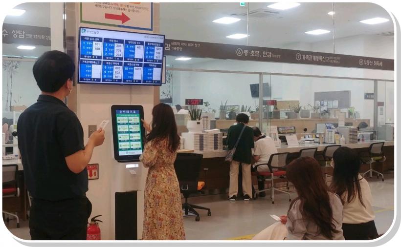 Á¾Çչοø½ÇÀ» ¹æ¹®ÇÑ ÁֹεéÀº ÅÍÄ¡Çü Ű¿À½ºÅ©¸¦ ÅëÇØ º»ÀÎÀÌ Ã³¸®ÇϰíÀÚ ÇÏ´Â ¹Î¿ø ¾÷¹« ºÐ¾ßÀÇ ¼ø¹ø ´ë±âÇ¥¸¦ »ÌÀº µÚ ´ëÇü ¸ð´ÏÅ͸¦ ÅëÇØ ⱸº° È£Ãâ¹øÈ£ ¹× ´ë±âÀÎ ¼ö¸¦ È®ÀÎÇÒ ¼ö ÀÖ´Ù.