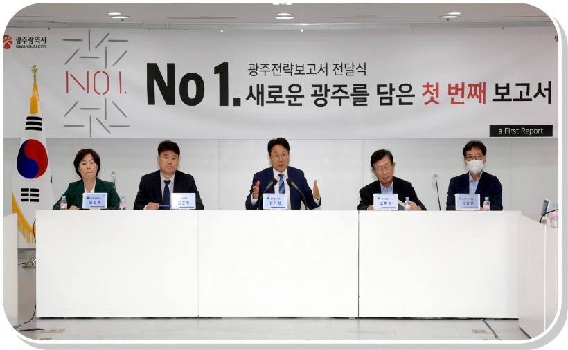 À̳¯ º¸°íȸ´Â ÀμöÀ§ÀÇ È°µ¿À» Á¾·áÇÏ¸ç ½Ã¹Îµé¿¡°Ô ù ¹øÂ° º¸°í¸¦ µå¸®´Â ÀÚ¸®·Î ´Ù¾çÇÑ Á¤Ã¥ Á¦¾È°ú ¹Ð¸° ¼÷Á¦ Çö¾È 5+1¿¡ ´ëÇÑ ÀÔÀå ¹ßÇ¥ ÈÄ ¡®Á¦1È£ ±¤ÁÖÀü·«º¸°í¼¡¯¸¦ ½ÃÀå¿¡°Ô Àü´ÞÇÏ´Â ¼ø¼·Î ÁøÇàµÆ´Ù.