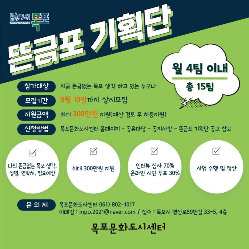 [°ø°£´º½º = ±è¿ëÁø±âÀÚ] ¸ñÆ÷¹®Èµµ½Ã¼¾ÅͰ¡ ¹®Èµµ½Ã»ç¾÷ÀÇ ¿øÈ°ÇÑ ÃßÁøÀ» À§ÇØ ½Ã¹ÎÃßÁø´Ü°ú ¶á±ÝÆ÷±âȹ´ÜÀ» ¸ðÁýÇÑ´Ù.