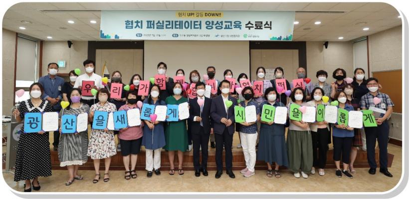 [°ø°£´º½º = ±è´ë¿µ±âÀÚ] ±¤ÁÖ ±¤»ê±¸(±¸Ã»Àå ¹Úº´±Ô)°¡ 19ÀÏ ¿ì»êµ¿ ÇàÁ¤º¹Áö¼¾ÅÍ 3Ãþ ´ë°´ç¿¡¼ 2022 ÇùÄ¡ ÆÛ½Ç¸®Å×ÀÌÅÍ(facilitator, Åä·Ð ÁøÇࡤÃËÁøÀÚ) ¾ç¼º±³À° ¼ö·á½ÄÀ» ¿°í, ¸ðµç ±³À° °úÁ¤À» ¸¶¹«¸®Çß´Ù.