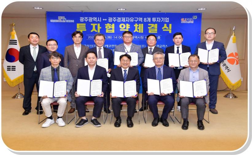[°ø°£´º½º = ±è¼ö±Ù±âÀÚ] ±¤ÁÖ°æÁ¦ÀÚÀ¯±¸¿ªÃ»Àº 19ÀÏ ±¤ÁÖ±¤¿ª½Ãû¿¡¼ ±¹³» 8°³ ±â¾÷°ú ÅõÀÚ±Ý¾× 565¾ï¿ø, °í¿ëâÃâ 150¿©¸í ±Ô¸ðÀÇ ÅõÀÚÇù¾à(MOU)À» ü°áÇß´Ù.
