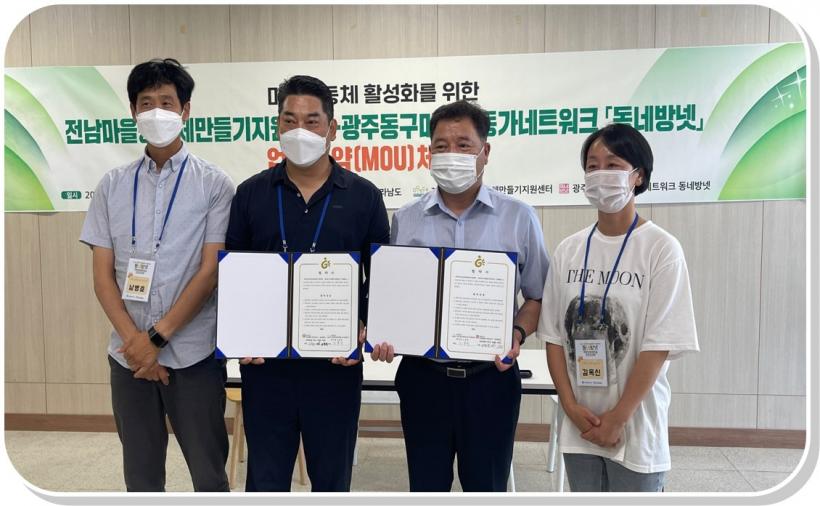 À̳¯ ¡®µ¿³×¹æ³Ý¡¯Àº ¸ñÆ÷Áö¿ª Ȱµ¿°¡µé°ú ¿ì¼ö»ç·Ê Á¤º¸¸¦ °øÀ¯Çϰí ÇâÈÄ È°¹ßÇÑ ±³·ù¸¦ ÇϰíÀÚ Àü³²¸¶À»¸¸µé±â °øµ¿Ã¼Áö¿ø¼¾ÅÍ¿Í ¾÷¹«Çù¾àÀ» ü°áÇß´Ù. À̸¦ °è±â·Î ¾ç ±â°üÀº ¼º°øÀûÀÎ ¸¶À»°øµ¿Ã¼ Ȱµ¿À» À§ÇØ »óÈ£Çù·ÂÇϱâ·Î Çß´Ù.