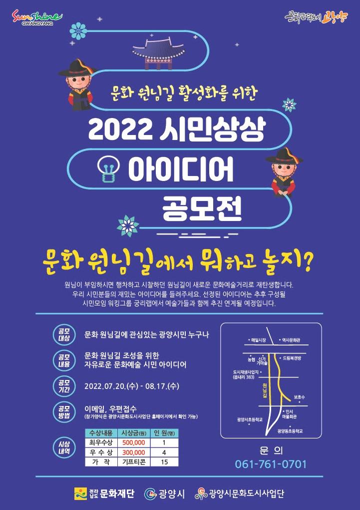 [°ø°£´º½º = ±è´ë¿µ±âÀÚ] ±¤¾ç½Ã´Â ¿À´Â 8¿ù 17ÀϱîÁö ¡®2022 ½Ã¹Î »ó»ó ¾ÆÀ̵ð¾î - ¹®È ¿ø´Ô±æ¿¡¼ ¹¹ÇÏ°í ³îÁö?¡¯¸¦ ¸ðÁýÇÑ´Ù.