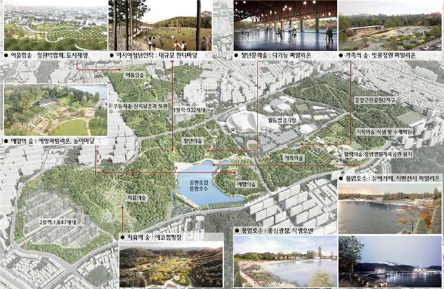 ÀÌÁß Áß¾Ó°ø¿ø(1Áö±¸)´Â °ø¿øÁß½É Ç³¾ÏÈ£¼ö¿Í ´Ù¾çÇÑ ±â´ÉÀ» °¡Áø 8°³ÀÇ Å׸¶½£ÀÌ ¾î¿ï¾îÁø ½£±â¹Ý µµ½Ã°ø¿øÀ¸·Î, µµ½ÃÁ¤¿ø¼¾ÅÍ, Èú¸µÄ·ÇÎÀå, ³ÐÀº Àܵð±¤Àå, ºø¹°»ýÅ¿ø, Çѱ¹¾ß»ý½Ä¹°¿Â½Ç, ¾î¸°ÀÌ ÇÇÅ©´Ð ¸¶´ç µîÀÇ °ø°£½Ã¼³ÀÌ Á¶¼ºµÈ´Ù.