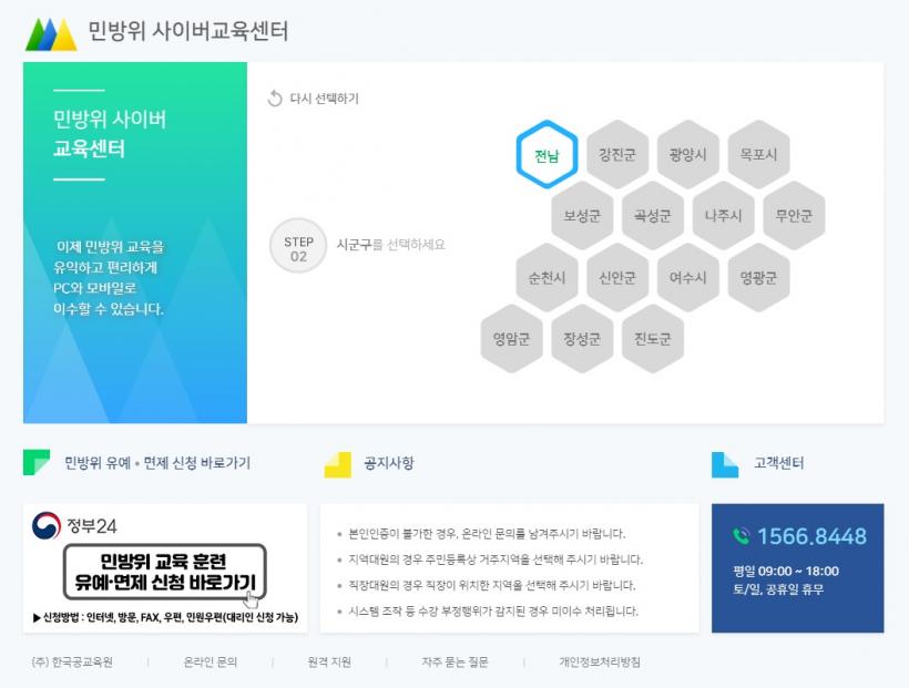 ¹Î¹æÀ§ 1Â÷ º¸Ãæ ±³À°Àº Àü±¹ ¾îµð¿¡¼³ª PC¿Í ½º¸¶Æ®ÆùÀ» ÀÌ¿ëÇØ 24½Ã°£ ±³À°¹ÞÀ» ¼ö ÀÖÀ¸¸ç, ¹Î¹æÀ§»çÀ̹ö±³À°(www.cmes.or.kr)¿¡ Á¢¼ÓÇØ º»ÀÎ ÀÎÁõ ÈÄ ¼ö°ÇÑ ÈÄ ÁøµµÀ² 100%, °´°ü½Ä Æò°¡ 20¹®Ç× Áß 70Á¡ ÀÌ»óÀ» ¾òÀ¸¸é À̼ö·Î ÀÎÁ¤µÈ´Ù.