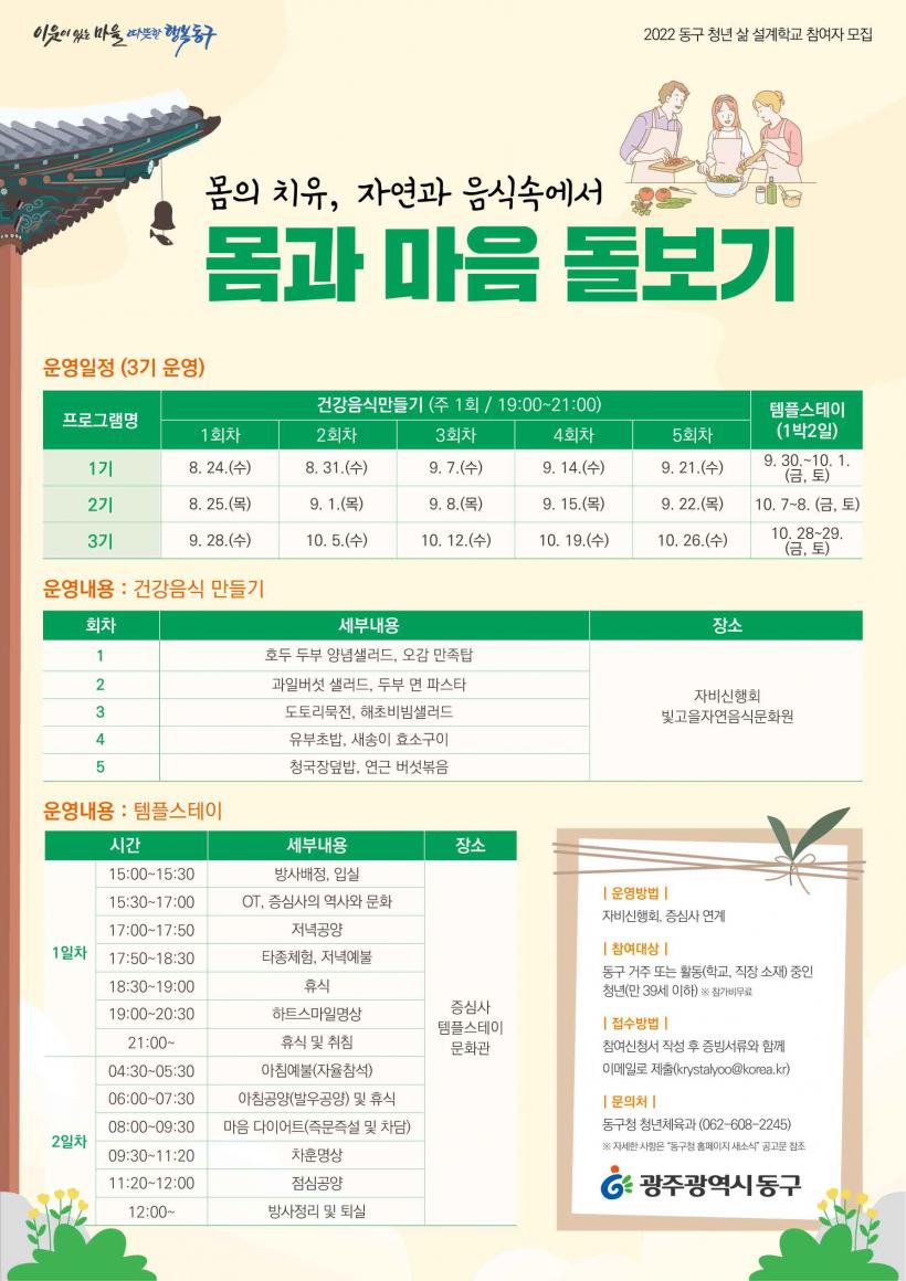 [°ø°£´º½º = ±è´ë¿µ±âÀÚ] ±¤ÁÖ µ¿±¸(±¸Ã»Àå ÀÓÅÃ)´Â ¹Ýº¹µÇ´Â ÀÏ»ó¿¡ ÁöÄ£ û³âµé¿¡°Ô ÀÚ¿¬¿¡¼ Àá½Ã ½¬¸ç ÀÚ½ÅÀÇ ¸ö°ú ¸¶À½À» µé¿©´Ùº¼ ¼ö ÀÖ´Â ¡®Ã»³â »î ¼³°èÇб³- ¸ö°ú ¸¶À½ µ¹º¸±â¡¯ ÇÁ·Î±×·¥ Âü¿©ÀÚ¸¦ ¿À´Â 19ÀϱîÁö ¸ðÁýÇÑ´Ù°í ¹àÇû´Ù.