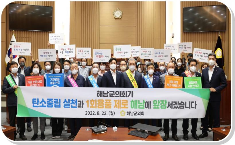 ÇØ³²±ºÀÇȸ ÀÇ¿øµéÀº ź¼ÒÁ߸³ »ýȰ ½ÇõÀ» ¾à¼ÓÇÏ´Â 'ź¼ÒÁ߸³ »ýȰ ½Çõ ¼±¾ð¹®'À» ´ëÇ¥·Î ¹ÎÂùÇõ ÀÇ¿øÀÌ ³¶µ¶Çϰí, ÀÇȸ»ç¹«°ú Á÷¿øµé°ú ÇÔ²² û»ç ³» 1ȸ¿ëǰ ¹ÝÀÔ ¹× »ç¿ë±ÝÁö¸¦ ´ÙÁüÇÏ´Â ÆÛÆ÷¸Õ½º¸¦ ÆîÃÆ´Ù.