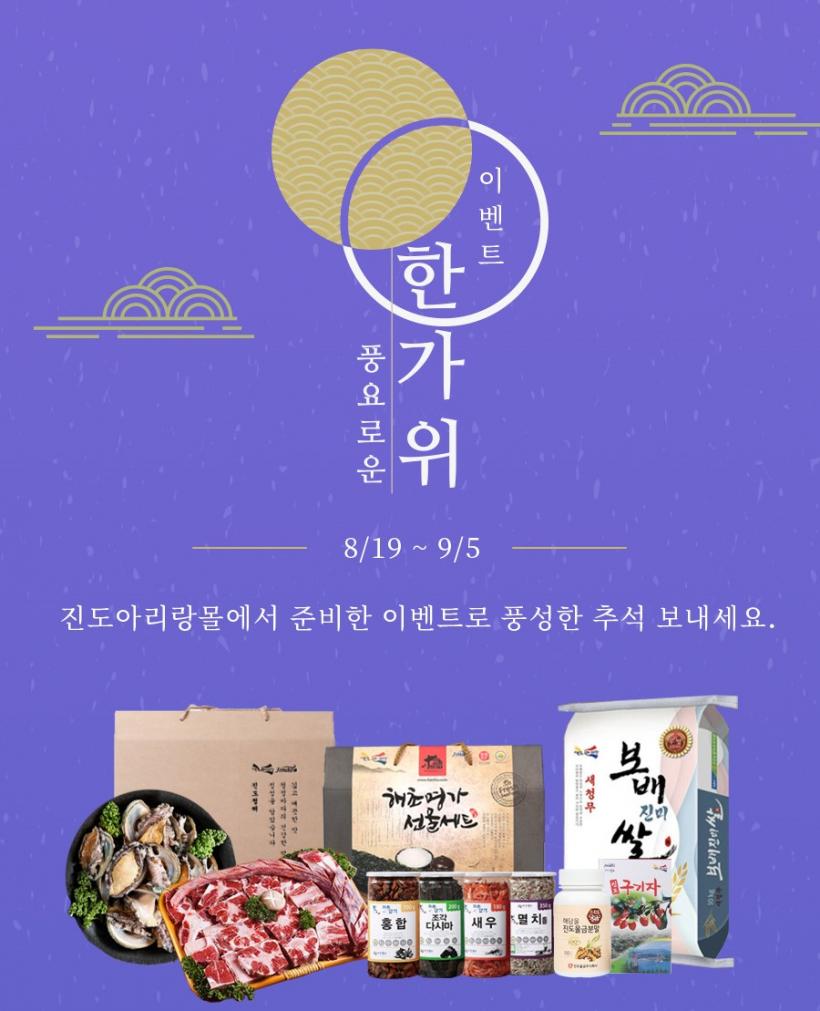 [°ø°£´º½º = ±è¼ö±Ù±âÀÚ] Áøµµ±º ³ó¼öƯ»ê¹° ¿Â¶óÀÎ ¼îÇθôÀÎ ¡®Áøµµ¾Æ¸®¶û¸ô¡¯¿¡¼ ¿À´Â 9¿ù 5ÀÏ(¿ù)±îÁö ¡®Ãß¼®¸ÂÀÌ Æ¯º° ÇÒÀÎÇà»ç¡¯ µî ´Ù¾çÇÑ À̺¥Æ®¸¦ ÁøÇàÇÑ´Ù.