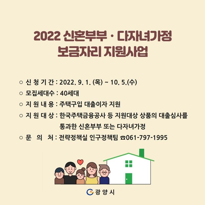 [°ø°£´º½º = ±è´ë¿µ±âÀÚ] ±¤¾ç½Ã°¡ ½ÅÈ¥ºÎºÎ¿Í ´ÙÀڳడÁ¤ÀÇ Áְźñ ºÎ´ãÀ» ´ú¾îÁÖ±â À§ÇØ ÁÖÅñ¸ÀÔ ´ëÃâÀÌÀÚ ÀϺθ¦ Áö¿øÇÏ´Â ¡®½ÅÈ¥ºÎºÎ¡¤´ÙÀڳడÁ¤ º¸±ÝÀÚ¸® Áö¿ø»ç¾÷¡¯ ´ë»óÀÚ 40¼¼´ë¸¦ ¸ðÁýÇÑ´Ù.
