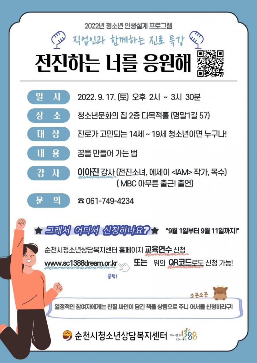 ¼øÃµ½Ã, û¼Ò³â Àλý¼³°è ÇÁ·Î±×·¥ ¡®ÀüÁøÇÏ´Â ³Ê¸¦ ÀÀ¿øÇØ¡¯ ¿î¿µ