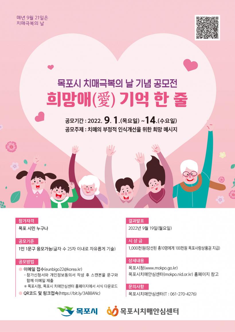 [°ø°£´º½º = ±è¿ëÁø±âÀÚ] ¸ñÆ÷½ÃÄ¡¸Å¾È½É¼¾ÅÍ´Â Á¦15ȸ Ä¡¸Å±Øº¹ÀÇ ³¯(9¿ù 21ÀÏ)À» ¸Â¾Æ Ä¡¸Å¿¡ ´ëÇÑ ¿Ã¹Ù¸¥ ÀÌÇØ¿Í °ü½É Áõ´ë·Î »çȸÀû ÁöÁö¸ÁÀ» Çü¼ºÇϱâ À§ÇØ ¡®Èñ¸Á¾Ö(äñ) ±â¾ï ÇÑ ÁÙ¡¯ °ø¸ðÀü Çà»ç¸¦ °³ÃÖÇÑ´Ù.