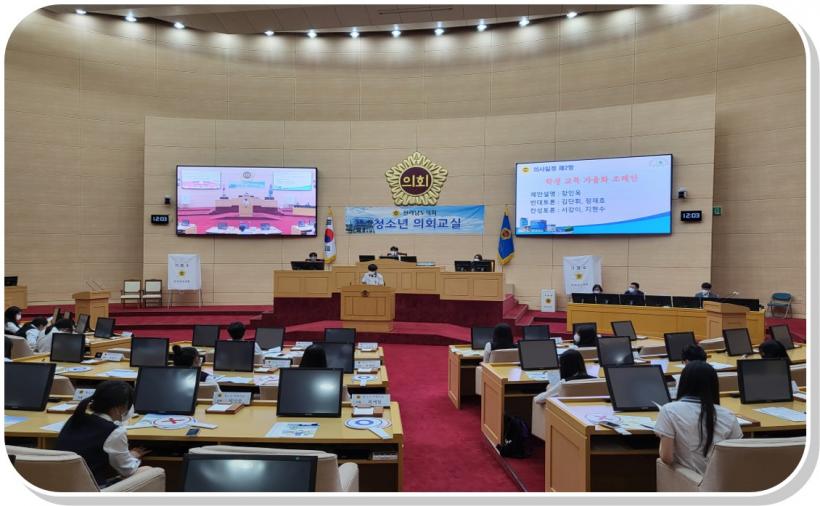 û¼Ò³â ÀÇȸ±³½ÇÀº µµ³» û¼Ò³âµéÀÌ ¡®1ÀÏ µµÀÇ¿ø¡¯À¸·Î À§Ã˵Ǿî ÀÇÀå ¼±°Å, Á¶·Ê Á¦Á¤¾È ÀÇ°á µî Áö¹æÀÇȸÀÇ ÀÇ»ç°áÁ¤ °úÁ¤¿¡ Á÷Á¢ Âü¿©ÇÏ´Â ÇÁ·Î±×·¥À¸·Î ÀÚÀ²ÇбâÁ¦°¡ ½ÃÇàµÇ¸é¼ Âü¿© Çб³ÀÇ È£ÀÀµµ°¡ Â÷Ãû ³ô¾ÆÁö°í ÀÖ´Ù.