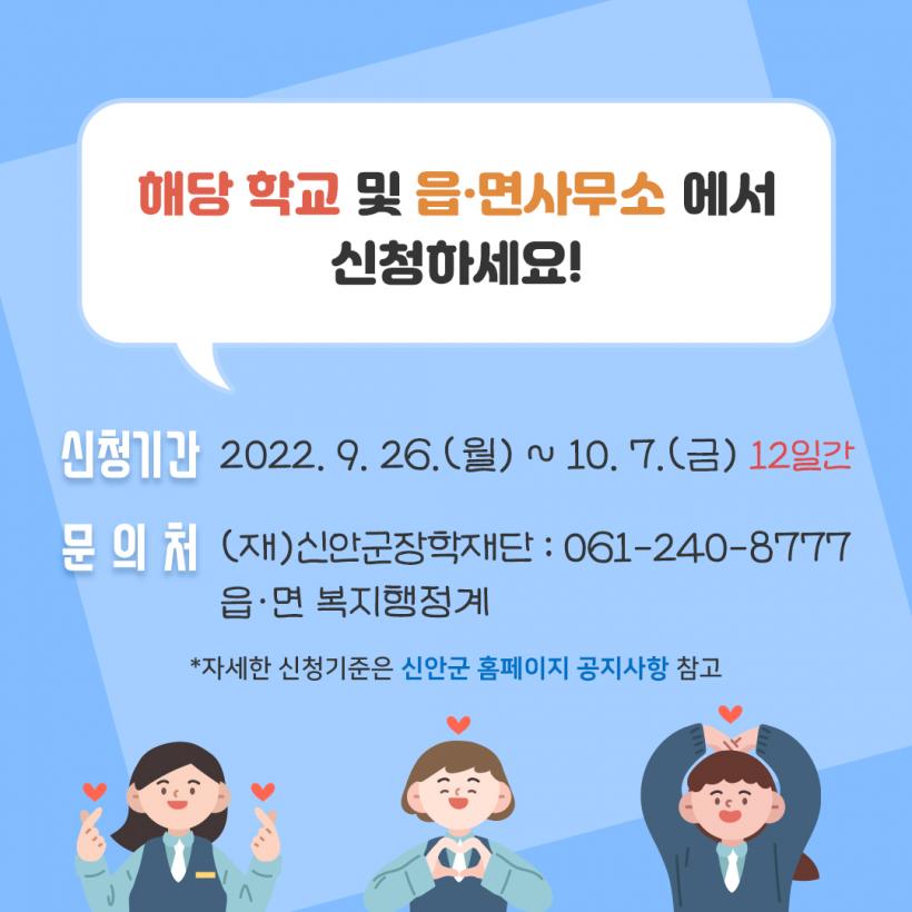 ¿À´Â 10¿ù 7ÀϱîÁö ÁÖ¼ÒÁö À¾‧¸é»ç¹«¼Ò¿¡ ½ÅûÇÏ¸é µÈ´Ù. ÀÚ¼¼ÇÑ »çÇ×Àº ½Å¾È±º ȨÆäÀÌÁö °øÁö»çÇ׿¡¼ È®ÀÎÇÒ ¼ö ÀÖ´Ù.