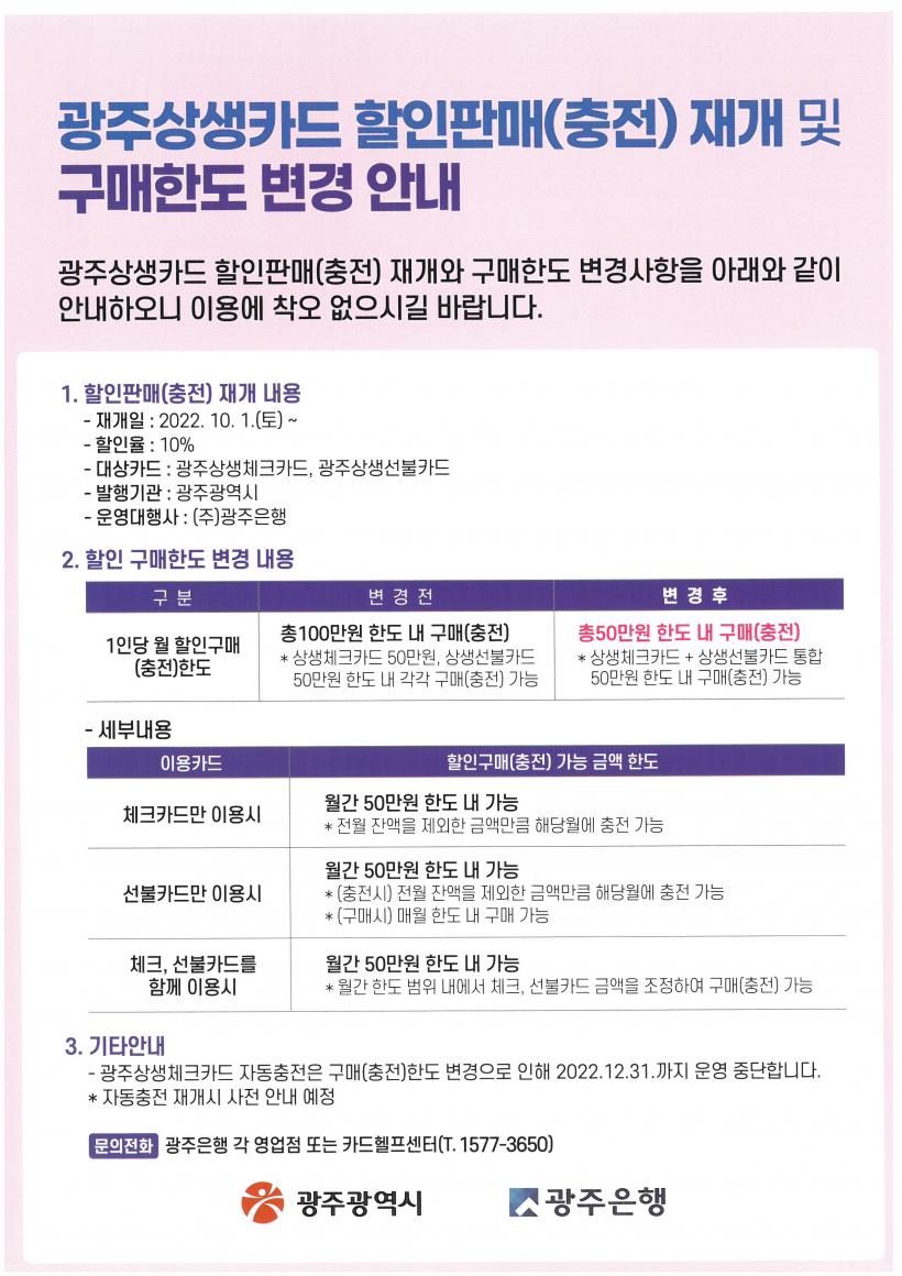[°ø°£´º½º = ±è¼ö±Ù±âÀÚ] ±¤ÁÖ±¤¿ª½Ã´Â Áö³ 6¿ù ÀçÁ¤¼ÒÁøÀ¸·Î ÀϽà Áß´ÜµÈ ±¤ÁÖ»ó»ýÄ«µå ÇÒÀιßÇàÀ» 10¿ù1ÀϺÎÅÍ Àç°³ÇÑ´Ù.