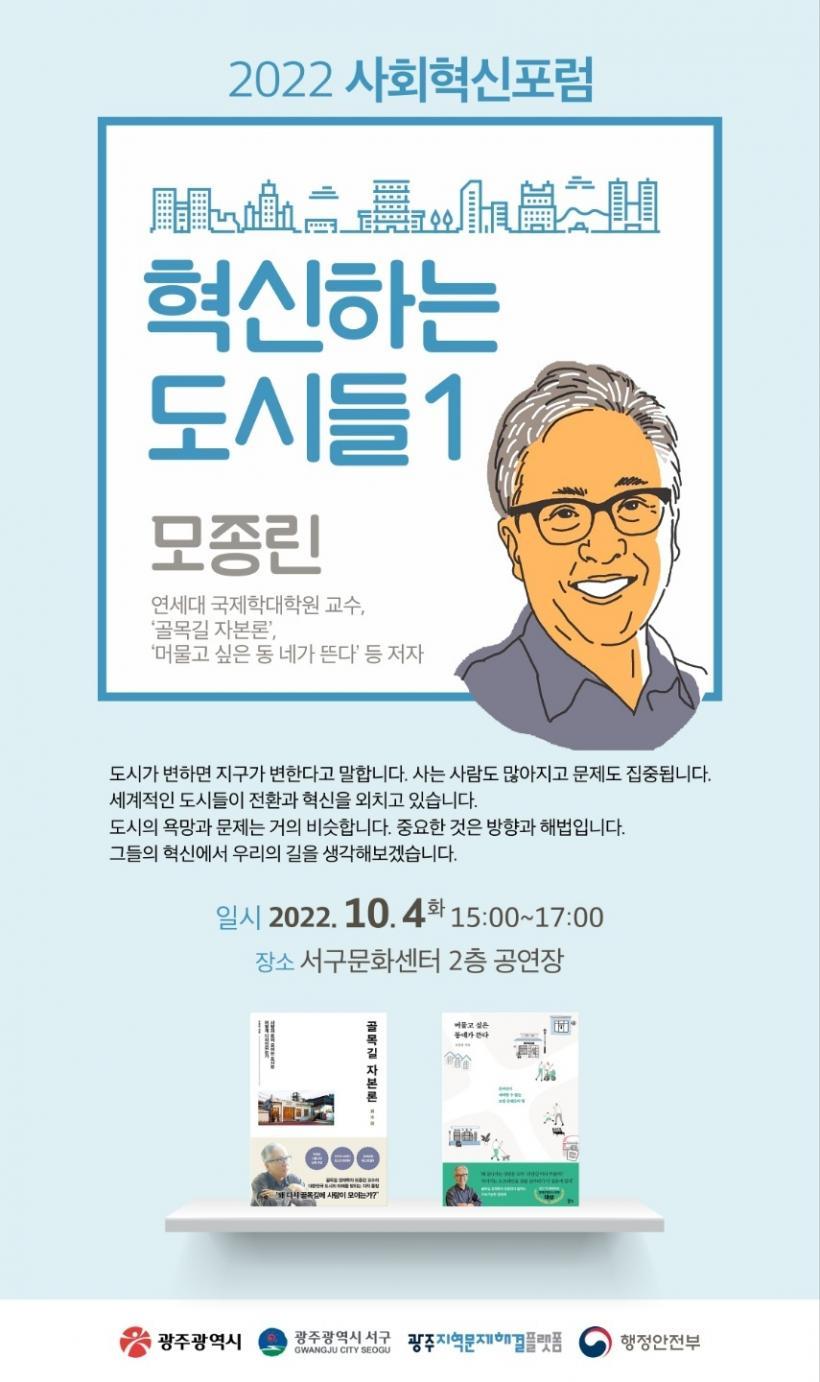 À̹ø Æ÷·³Àº ¡®Çõ½ÅÇÏ´Â µµ½Ãµé¡¯À̶ó´Â ÁÖÁ¦·Î 10¿ùºÎÅÍ µÎ ´Þ°£ ÁøÇàµÇ´Â 2022³â ±¤ÁÖ »çȸÇõ½ÅÆ÷·³ÀÇ Ã¹ ¹øÂ° Çà»ç·Î ¼¼°èÀûÀ¸·Î Çõ½ÅÇÏ´Â µµ½ÃµéÀÇ »ç·Ê¸¦ ÅëÇØ ±¤ÁÖÀÇ ±æÀ» ¸ð»öÇϱâ À§ÇØ ¸¶·ÃµÈ °ÍÀÌ´Ù.
