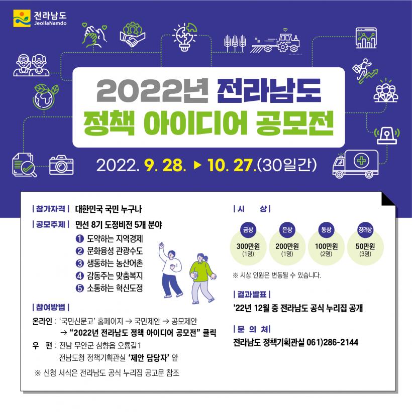[°ø°£´º½º = ±è¼ö±Ù±âÀÚ] Àü¶ó³²µµ´Â ±¹¹ÎÀÇ Âü½ÅÇÑ ¾ÆÀ̵ð¾î¸¦ ¹ß±¼ÇØ µµÁ¤¿¡ ¹Ý¿µÇϱâ À§ÇØ ¡®2022³â Á¤Ã¥ Á¦¾È ¾ÆÀ̵ð¾î °ø¸ðÀü¡¯À» °³ÃÖÇÑ´Ù°í ¹àÇû´Ù.