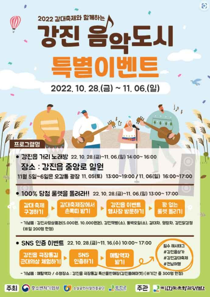 10¿ù 28ÀϺÎÅÍ 11¿ù 4ÀϱîÁö ¸ÅÀÏ ¿ÀÈÄ 2½ÃºÎÅÍ °ÁøÀ¾ Áß¾Ó·Î ÀÏ¿ø¿¡¼ ¹ö½ºÄ¿µéÀÇ °ø¿¬À» °¨»óÇϰí Á÷Á¢ Âü¿©ÇØ ³ë·¡¸¦ ºÎ¸£¸é ±â³äǰÀ» ¹ÞÀ» ¼ö ÀÖ´Â ¡®°ÁøÀ¾ °Å¸®³ë·¡¹æ¡¯ Çà»ç°¡ ¿¸°´Ù.