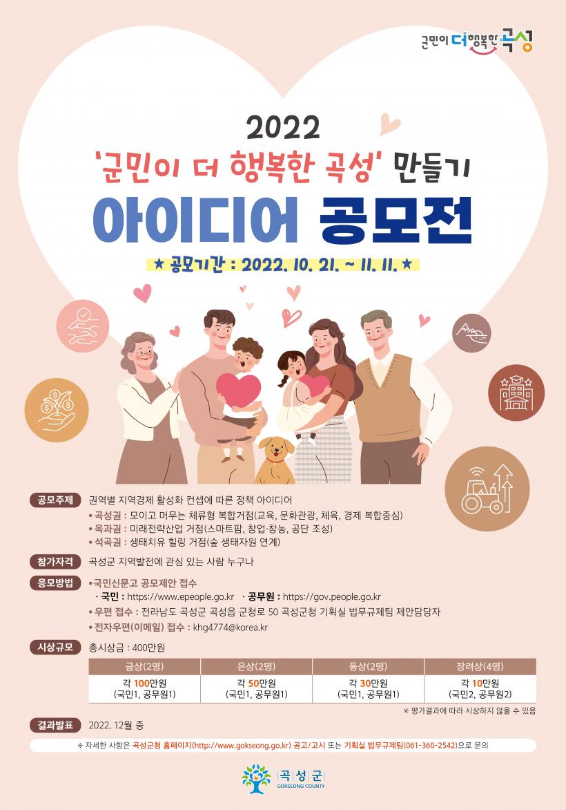 [°ø°£´º½º = Àå¿ÁÁø±âÀÚ] °î¼º±º(±º¼ö ÀÌ»óö)ÀÌ ¿À´Â 11¿ù 11ÀϱîÁö Àü ±¹¹Î°ú °ø¹«¿øÀ» ´ë»óÀ¸·Î 2022³âµµ ±º¹ÎÀÌ ´õ ÇູÇÑ °î¼º ¸¸µé±â ¾ÆÀ̵ð¾î °ø¸ðÀüÀ» °³ÃÖÇÑ´Ù.