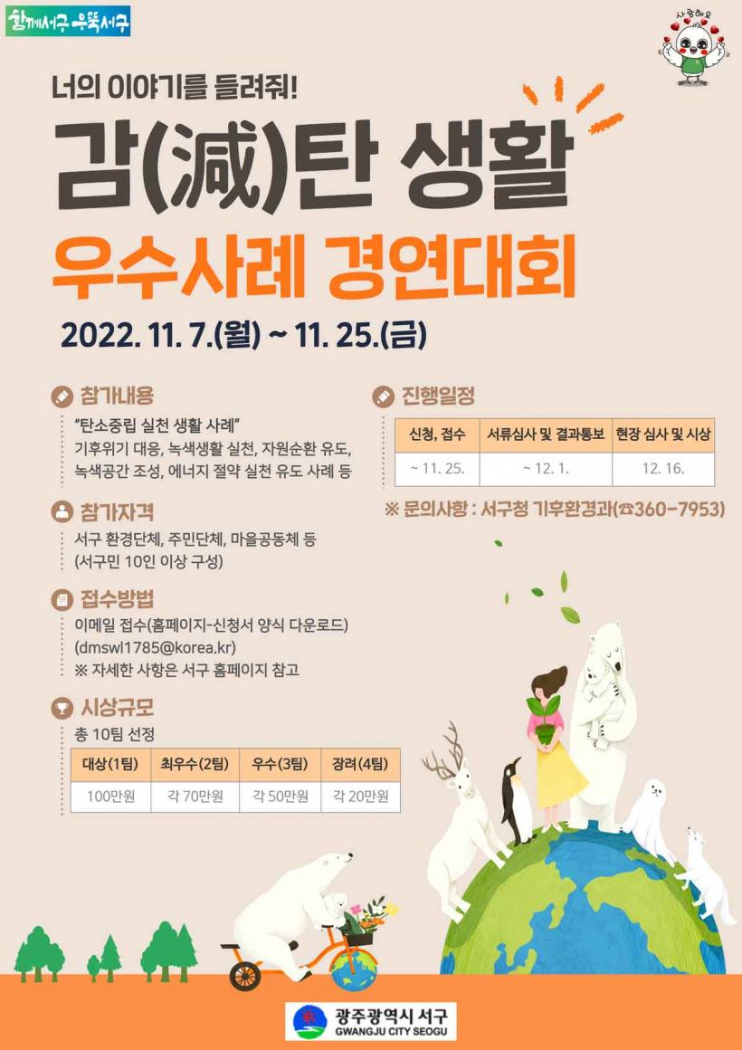 [°ø°£´º½º = ±è´ë¿µ±âÀÚ] ±¤ÁÖ ¼±¸(±¸Ã»Àå ±èÀ̰)°¡ ¿À´Â 25ÀϱîÁö ¡®°¨(Êõ)ź »ýȰ ¿ì¼ö»ç·Ê¡¯ °ø¸ð¸¦ ½Ç½ÃÇÑ´Ù.