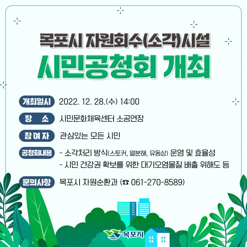 [°ø°£´º½º = ±è¿ëÁø±âÀÚ] ¸ñÆ÷½Ã°¡ ¿À´Â 28ÀÏ ¿ÀÈÄ 2½Ã ½Ã¹Î¹®ÈüÀ°¼¾ÅÍ¿¡¼ ÀÚ¿øÈ¸¼ö(¼Ò°¢)½Ã¼³ °Ç¸³»ç¾÷¿¡ ´ëÇÑ ½Ã¹Î°øÃ»È¸¸¦ °³ÃÖÇÑ´Ù.