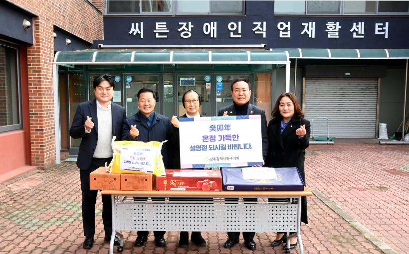 [°ø°£´º½º = ±è´ë¿µ±âÀÚ] ±¤ÁÖ ºÏ±¸ÀÇȸ(ÀÇÀå ±èÇü¼ö)°¡ ¹ÎÁ· ÃÖ´ë ¸íÀýÀÎ ¼³À» ¸Â¾Æ »çȸº¹Áö½Ã¼³À» ¹æ¹®ÇÏ¿© Ãë¾à°èÃþÀ» À§¹®ÇÏ´Â µî µû¶æÇÑ Á¤À» ³ª´©¾ú´Ù°í ¹àÇû´Ù.