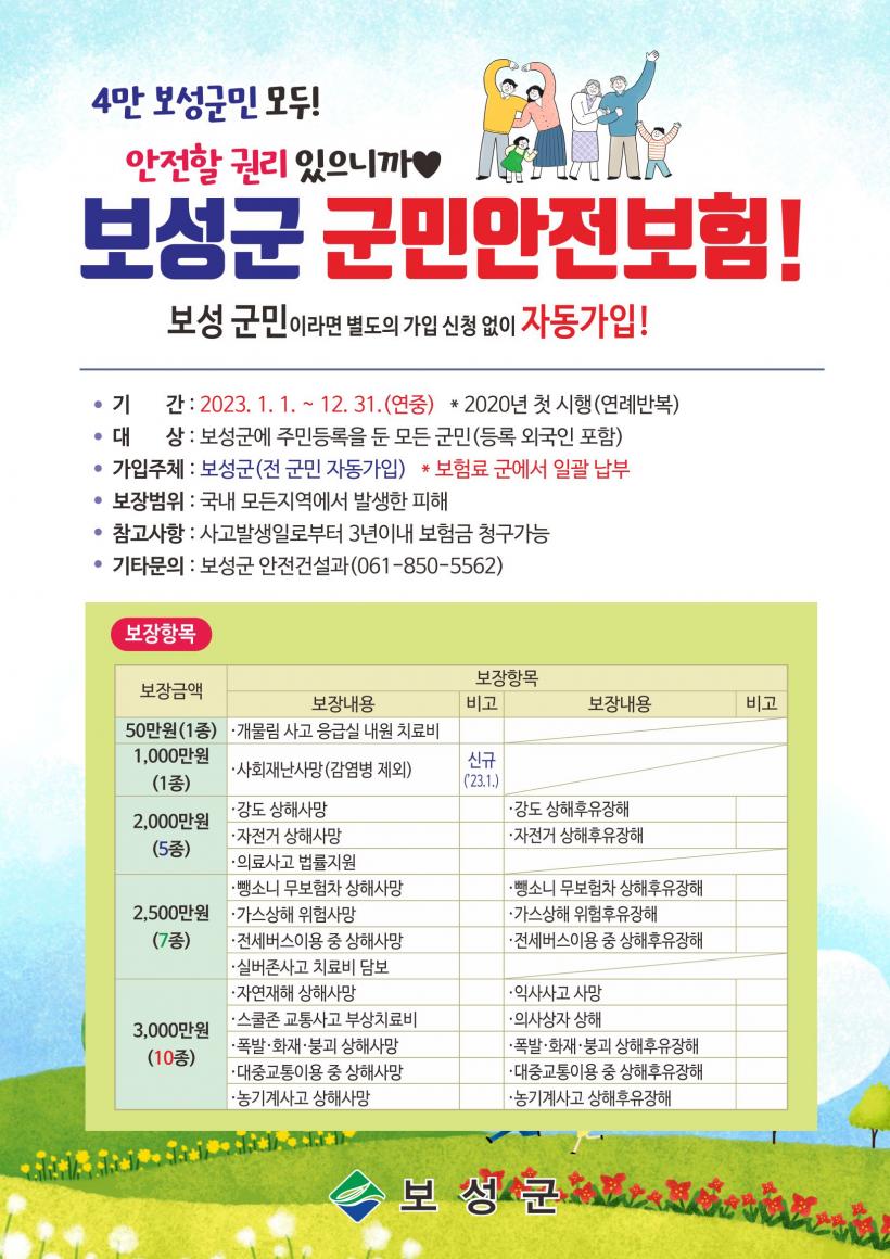 [°ø°£´º½º = ¾ÈÀ翵±âÀÚ] º¸¼º±ºÀº ¿ÃÇØµµ ¿¹±âÄ¡ ¸øÇÑ °¢Á¾ Àç³, ¾ÈÀü»ç°í µîÀ¸·ÎºÎÅÍ º¸¼º±º¹ÎÀÇ »ýȰ ¾ÈÀüÀ» À§ÇØ º¸Çè±ÝÀ» Áö±ÞÇÏ´Â ¡®2023³â º¸¼º±º ±º¹Î¾ÈÀüº¸Ç衯°¡ÀÔÀ» ¿Ï·áÇß´Ù°í ¹àÇû´Ù.