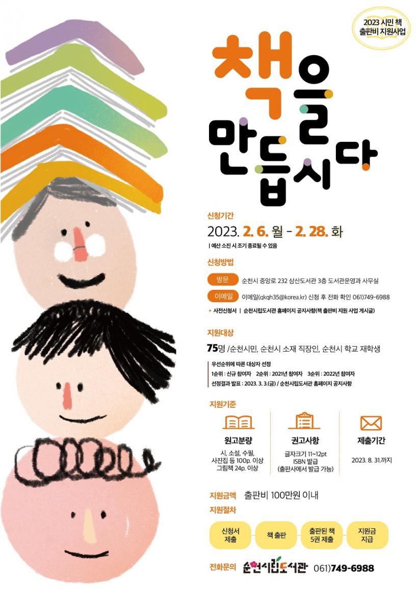 [°ø°£´º½º = ¾ÈÀ翵±âÀÚ] ¼øÃµ½Ã(½ÃÀå ³ë°ü±Ô)´Â ½Ã¹ÎµéÀÇ Ã¥ ¾²±â ¹®È Á¶¼ºÀ» À§ÇØ Ã¥ ÃâÆÇºñ ÀϺθ¦ Áö¿øÇÏ´Â ¡®½Ã¹Î Ã¥ ÃâÆÇºñ Áö¿ø »ç¾÷¡¯À» ¿À´Â 6ÀϺÎÅÍ ¿î¿µÇÑ´Ù.