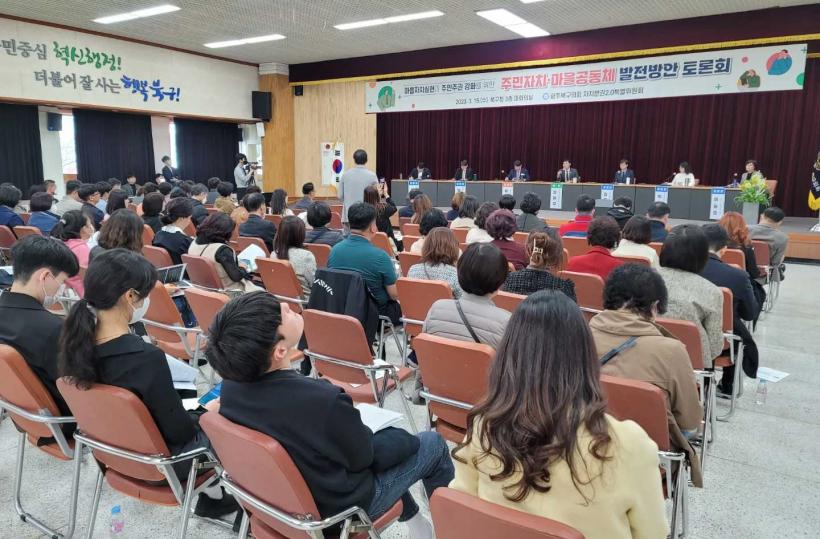 Á¤´Þ¼º À§¿øÀåÀÌ ÁÂÀåÀ» ¸ÃÀº Åä·Ðȸ¿¡´Â À̿뿬 ¸¶À»ÀÚÄ¡¿¬±¸¼Ò ´ëÇ¥°¡ ¹ßÁ¦ÀÚ·Î ³ª¼¹À¸¸ç ¡ã±èµ¿¼ö ºÏ±¸ÁÖ¹ÎÀÚÄ¡ÇùÀÇȸ ȸÀå ¡ãºù¼º¼ö ºÏ±¸ÁÖ¹ÎÂü¿©¿¹»êÀ§¿øÈ¸ À§¿øÀå ¡ã¹Ú¹ÌÀÚ ºÏ±¸¸¶À»³×Æ®¿öÅ© °øµ¿¿î¿µÀ§¿øÀå ¡ã½ÅÁ¤ÈÆ ÀÚÄ¡ºÐ±Ç2.0Ưº°À§¿øÈ¸ ºÎÀ§¿øÀå ¡ãÀÌ½Â¹Ì ºÏ±¸ ÁÖ¹ÎÀÚÄ¡°úÀåÀÌ Åä·ÐÀÚ·Î Âü¿©ÇÏ¿© Ȱ¹ßÇÑ ÀǰßÀ» °³ÁøÇÏ¿´À¸¸ç. ÀÌÇü¼® ±¹È¸ÀÇ¿ø°ú ¹®ÀÎ ºÏ±¸Ã»Àå ¶ÇÇÑ Åä·Ðȸ ÃëÁö¿¡ °ø°¨´ë¸¦ Çü¼ºÇϰí Çà»ç¿¡ ÇÔ²²ÇÏ¿´´Ù.