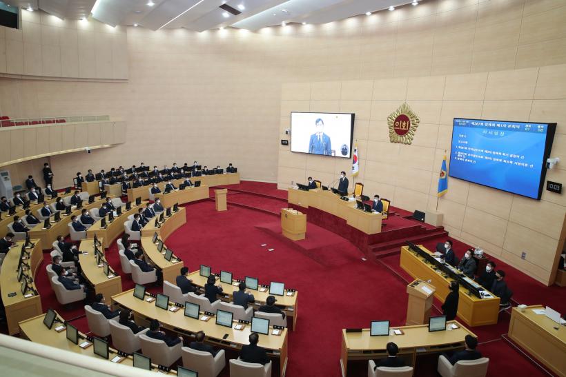 À̳¯ Á¦2Â÷ º»È¸ÀÇ¿¡¼ Á¶·Ê¾È 18°Ç, °ÇÀÇ¾È 11°Ç, °áÀÇ¾È 2°Ç, µ¿ÀÇ¾È 1°ÇÀ» ÀǰáÇß°í 5ºÐ ÀÚÀ¯¹ß¾ð¿¡¼ ÀÇ¿ø 6¸íÀÌ ´Ù¾çÇÑ ÀǰßÀ» Á¦½ÃÇß´Ù.