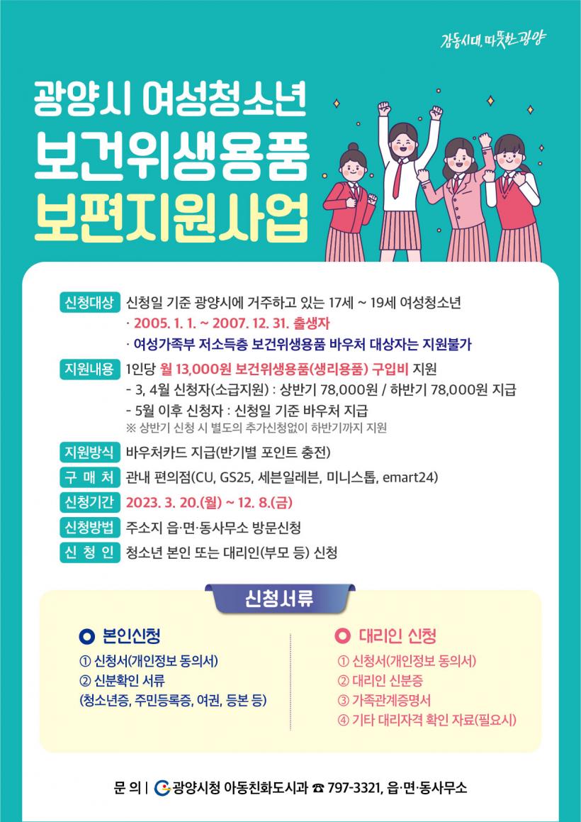 [°ø°£´º½º = ¾ÈÀ翵±âÀÚ] ±¤¾ç½Ã´Â ¿ÃÇØºÎÅÍ ¿©¼ºÃ»¼Ò³âÀÇ °Ç°±Ç º¸Àå°ú ±ÇÀÍÁõÁø ½ÇÇöÀ» À§ÇÑ ¡®±¤¾ç½Ã ¿©¼ºÃ»¼Ò³â º¸°ÇÀ§»ý¿ëǰ º¸ÆíÁö¿ø»ç¾÷¡¯À» ÃßÁøÇÑ´Ù°í ¹àÇû´Ù.