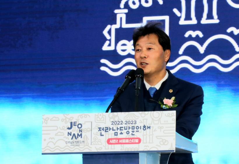 [°ø°£´º½º = ±è¼ö±Ù±âÀÚ] Àü¶ó³²µµÀÇȸ ¼µ¿¿í ÀÇÀåÀÌ Áö³ 21ÀÏ ¼¿ï ±¤È¹®±¤Àå¿¡¼ ¿¸° ¡®Àü¶ó³²µµ ¹æ¹®ÀÇ ÇØ ¼¿ïÆä½ºÆ¼¹ú¡¯ °³¸·½Ä¿¡ Âü¼®Çß´Ù.